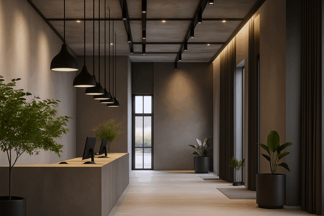 Ambientes com mais de 200 m² precisam de um projeto de iluminação inteligente, que combine diferentes tipos de luz com controle técnico e sensibilidade estética. A junção da iluminação geral com luzes de destaque, decorativas e funcionais cria espaços comerciais mais eficientes, bonitos e envolventes.